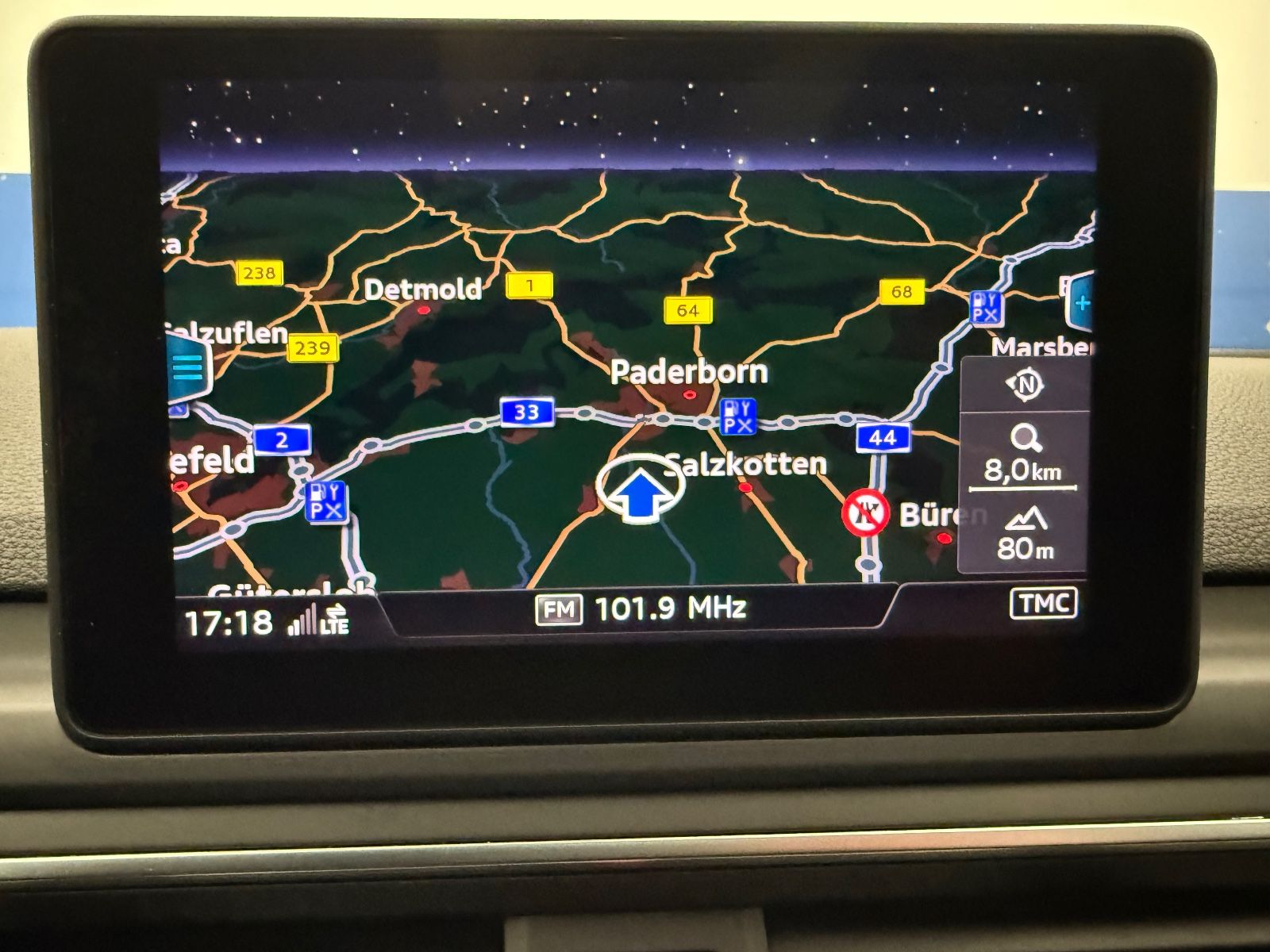 Audi connect (Internetbasierende Dienste) Audi connect (Notruf- und Assistance-System) Außenspiegel elektr. verstell-, heiz- und anklappbar Bluetooth-Freisprecheinrichtung mit Spracherkennung (Audi Phone Box) Dachhimmel Stoff, schwarz Einparkhilfe vorn und hinten, akustisch und optisch mit selektiver Anzeige (APS Plus) Fahrassistenz-System: Anfahr-Assistent (hold assist) Fahrassistenz-System: Insassen-Schutzsystem (Audi pre sense basic) Fahrer-Informations-System (FIS) mit Farbdisplay Frontscheibe Klimakomfort / Akustikglas, heizbar Harnstofftank (SCR): 24 Ltr. Innenspiegel mit Abblendautomatik Kopfstützen variabel verstellbar Lenkrad (Leder - 3-Speichen) mit Multifunktion plus Multi-Media-Interface MMI Navigation Panoramadach vorn elektrisch, hinten fest Sitzheizung vorn Sound-System Bang & Olufsen