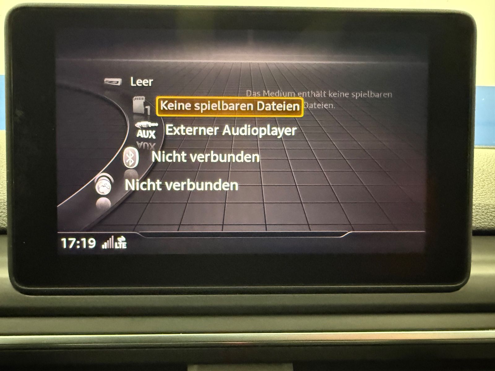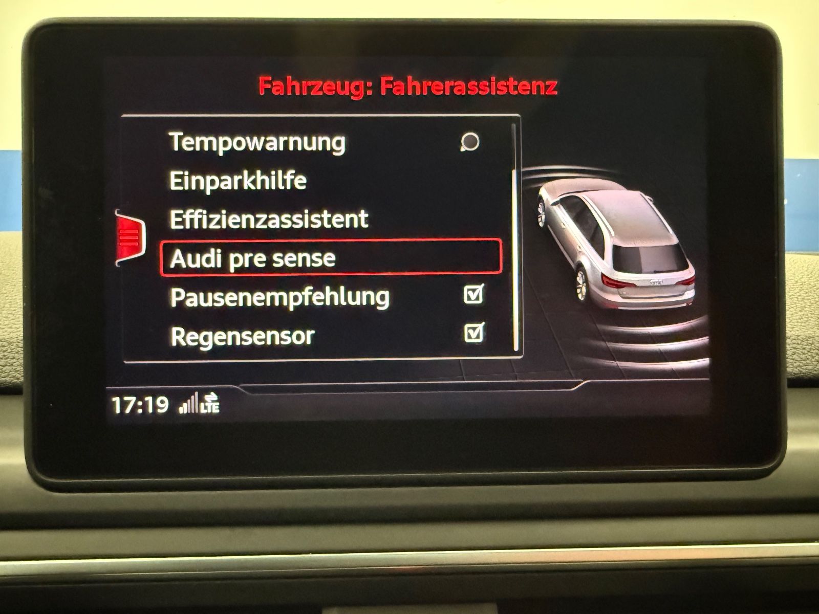 Airbag Fahrer-/Beifahrerseite Antriebs-Schlupfregelung (ASR) mit EDS Audi Drive Select Außenspiegel asphärisch, links Außenspiegel asphärisch, rechts Außenspiegel Wagenfarbe Blinkleuchten LED in Außenspiegel integriert Bremsassistent Dachkantenspoiler Dachreling eloxiert Einstiegsleisten mit Aluminiumeinlage Elektron. Differentialsperre (EDS) Fahrassistenz-System: City-Notbremsfunktion (Audi pre sense City) Fahrassistenz-System: Müdigkeitserkennung (Pausenempfehlung) Gepäck-/Laderaumabdeckung elektrisch Gepäckraum-Abtrennung (Netz) Gepäckraumklappe elektr. betätigt (öffnen + schliessen) Geschwindigkeits-Begrenzeranlage Glanz-Paket Innenausstattung: Dekoreinlagen Aluminium Isofix-Aufnahmen für Kindersitz Karosserie: 4-türig Klimaautomatik Kopf-Airbag-System (Sideguard) Ladekantenschutz (Edelstahl) Lendenwirbelstützen vorn, elektr. verstellbar LM-Felgen Modellbezeichnung mit neuer Leistungskennzeichnung Motor 2,0 Ltr. - 140 kW 16V TDI Multi-Media-Interface MMI Basic Plus / MMI Radio Plus Nichtraucher-Paket Reifen-Reparaturkit Reifenkontroll-Anzeige Rücksitzlehne geteilt/klappbar Schadstoffarm nach Abgasnorm Euro 6d-TEMP Scheibenwaschdüsen heizbar SCR-System (AdBlue-Technologie) Seitenairbag vorn Sitzbezug / Polsterung: Stoff System Sitze vorn manuell einstellbar Sportsitze vorn Standard-Fahrwerk Start/Stop-Anlage Stoßfänger Sport-Design (S-line) Uni-Lackierung Wendeladeboden (Ladeboden) Wärmeschutzverglasung grün getönt Xenon-Scheinwerfer Plus (Abblend- und Fernlicht) Alle Angaben ohne Gewähr