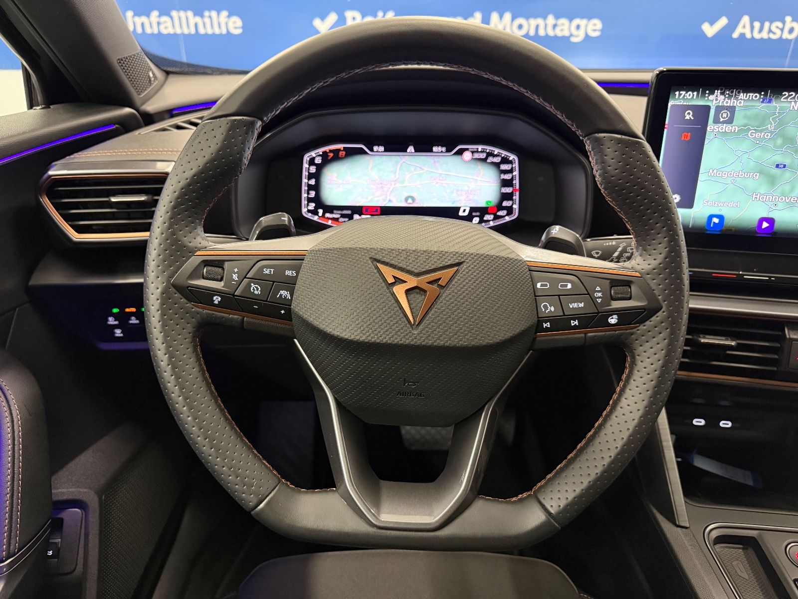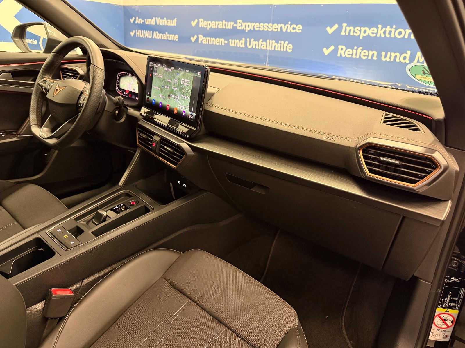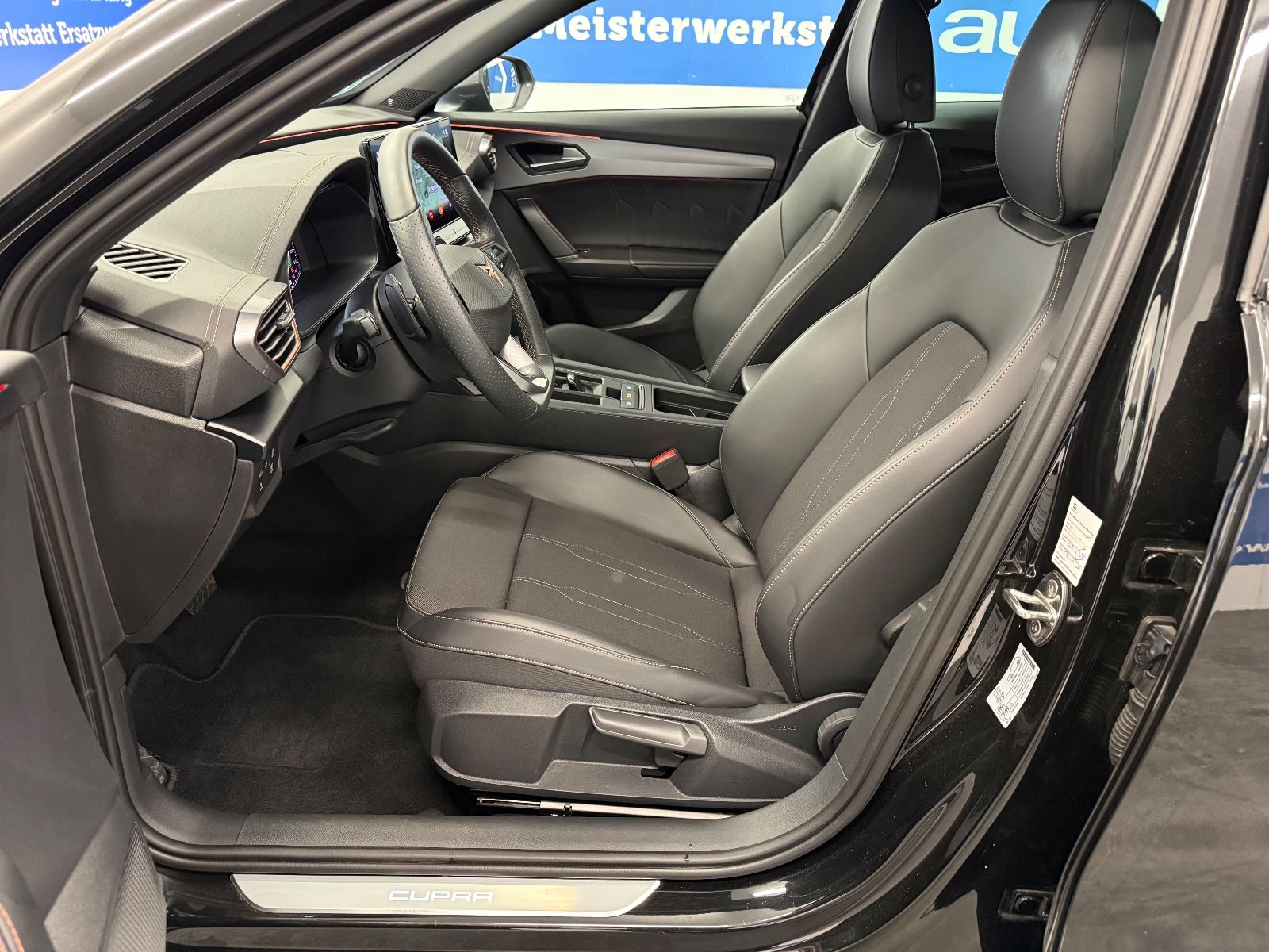 Airbag Beifahrerseite abschaltbar Airbag Fahrer-/Beifahrerseite Antriebs-Schlupfregelung (ASR) Außenspiegel elektr. verstell-, heiz- und anklappbar mit Spiegelabsenkung und Welcome Light Blinkleuchten LED in Außenspiegel integriert Bluetooth-Schnittstelle mit Freisprecheinrichtung integriert Dachreling schwarz, hochglänzend Doppeltonhorn Einstiegsleisten (Aluminium) vorn, beleuchtet Elektron. Differentialsperre (XDS) Fahrassistenz-System: Fahrprofilauswahl (CUPRA Drive Profile) Fensterheber elektrisch vorn + hinten mit Komfortschaltung Fensterzierleisten schwarz hochglänzend Gepäckraumabdeckung / Rollo Heckleuchten Voll-LED mit dynamischem Lichtband (Infinite Light) Isofix-Aufnahmen für Kindersitz an Rücksitz Karosserie: 5-türig Klimaanlage Climatronic 3-Zonen Kombiinstrument digital (virtual cockpit) Kopf-Airbag-System Laderaumboden variabel und herausnehmbar Lendenwirbelstütze Sitz vorn links, verstellbar Lendenwirbelstütze Sitz vorn rechts, verstellbar Licht- und Sicht-Paket LM-Felgen Mittelarmlehne hinten Mittelkonsole vorn mit Mittelarmlehne Becherhalter Ablagebox und Luftausströmer hinten Motor 1,5 Ltr. - 110 kW 16V TSI ACT Notrufsystem Otto-Partikelfilter (OPF) Parkbremse elektrisch Radioempfang digital (DAB+) Radstand 2679 mm Rücksitzlehne geteilt/klappbar (1/3-2/3) Rücksitzlehnen umklappbar mit Fernentriegelung im Kofferraum Schadstoffarm nach Abgasnorm Euro 6d Seitenairbag Seitenairbag vorn mitte (Central Airbag) Seitenscheiben hinten und Heckscheibe abgedunkelt Sitz vorn links höhenverstellbar Sitz vorn rechts höhenverstellbar Sitzbezug / Polsterung: Stoff Sonnenblende links mit Spiegel (beleuchtet) Sonnenblende rechts mit Spiegel (beleuchtet) Sportsitze vorn Start/Stop-Anlage Steckdose (12V-Anschluß) vorn Steckdose 230V im Gepäckraum USB-Ladeanschlüsse (2-fach, Typ C) für 2.Sitzreihe USB-Schnittstelle vorn (2-fach, Typ C) Verzurrösen Koffer-/Laderaum Warnanlage für Sicherheitsgurt-System Wärmeschutzverglasung Alle Angaben ohne Gewähr