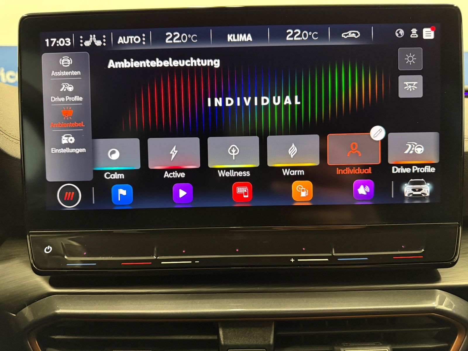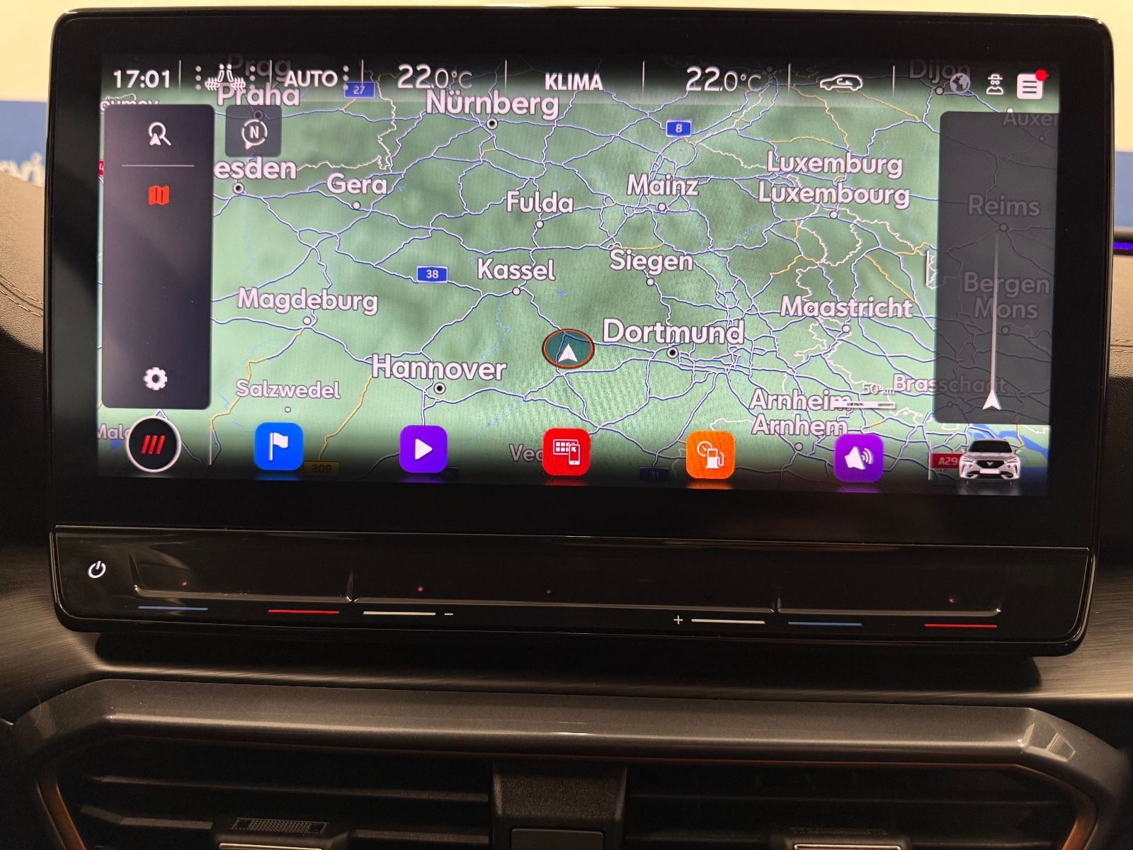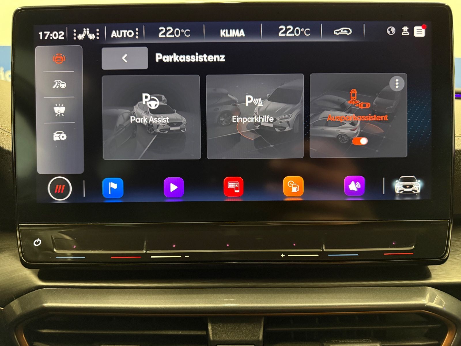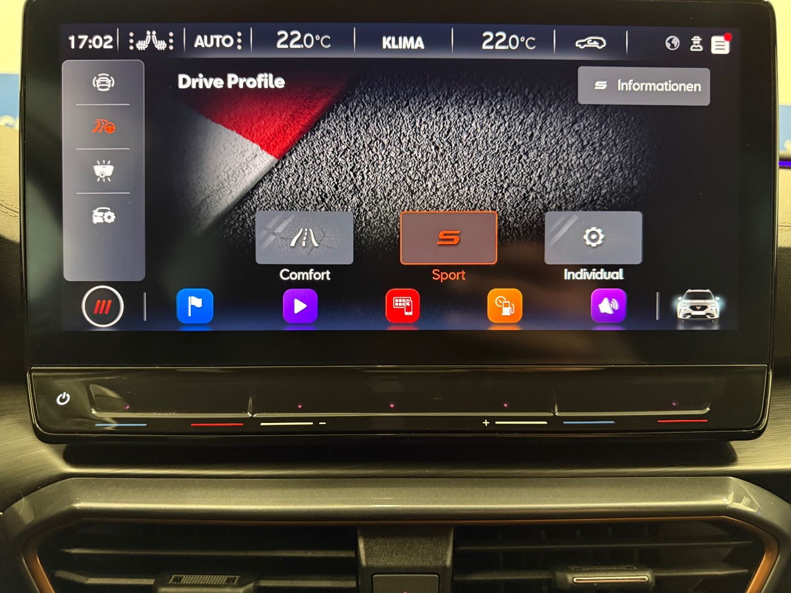Airbag Beifahrerseite abschaltbar Airbag Fahrer-/Beifahrerseite Antriebs-Schlupfregelung (ASR) Außenspiegel elektr. verstell-, heiz- und anklappbar mit Spiegelabsenkung und Welcome Light Blinkleuchten LED in Außenspiegel integriert Bluetooth-Schnittstelle mit Freisprecheinrichtung integriert Dachreling schwarz, hochglänzend Doppeltonhorn Einstiegsleisten (Aluminium) vorn, beleuchtet Elektron. Differentialsperre (XDS) Fahrassistenz-System: Fahrprofilauswahl (CUPRA Drive Profile) Fensterheber elektrisch vorn + hinten mit Komfortschaltung Fensterzierleisten schwarz hochglänzend Gepäckraumabdeckung / Rollo Heckleuchten Voll-LED mit dynamischem Lichtband (Infinite Light) Isofix-Aufnahmen für Kindersitz an Rücksitz Karosserie: 5-türig Klimaanlage Climatronic 3-Zonen Kombiinstrument digital (virtual cockpit) Kopf-Airbag-System Laderaumboden variabel und herausnehmbar Lendenwirbelstütze Sitz vorn links, verstellbar Lendenwirbelstütze Sitz vorn rechts, verstellbar Licht- und Sicht-Paket LM-Felgen Mittelarmlehne hinten Mittelkonsole vorn mit Mittelarmlehne Becherhalter Ablagebox und Luftausströmer hinten Motor 1,5 Ltr. - 110 kW 16V TSI ACT Notrufsystem Otto-Partikelfilter (OPF) Parkbremse elektrisch Radioempfang digital (DAB+) Radstand 2679 mm Rücksitzlehne geteilt/klappbar (1/3-2/3) Rücksitzlehnen umklappbar mit Fernentriegelung im Kofferraum Schadstoffarm nach Abgasnorm Euro 6d Seitenairbag Seitenairbag vorn mitte (Central Airbag) Seitenscheiben hinten und Heckscheibe abgedunkelt Sitz vorn links höhenverstellbar Sitz vorn rechts höhenverstellbar Sitzbezug / Polsterung: Stoff Sonnenblende links mit Spiegel (beleuchtet) Sonnenblende rechts mit Spiegel (beleuchtet) Sportsitze vorn Start/Stop-Anlage Steckdose (12V-Anschluß) vorn Steckdose 230V im Gepäckraum USB-Ladeanschlüsse (2-fach, Typ C) für 2.Sitzreihe USB-Schnittstelle vorn (2-fach, Typ C) Verzurrösen Koffer-/Laderaum Warnanlage für Sicherheitsgurt-System Wärmeschutzverglasung Alle Angaben ohne Gewähr