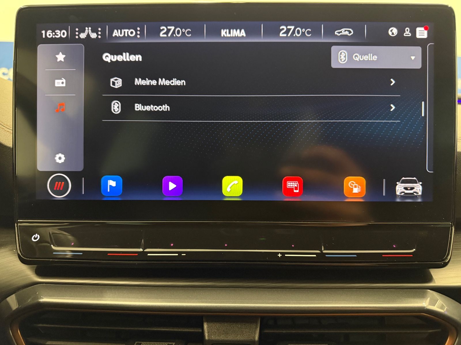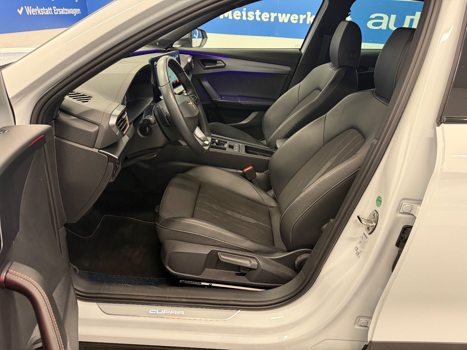 Airbag Beifahrerseite abschaltbar Airbag Fahrer-/Beifahrerseite Antriebs-Schlupfregelung (ASR) Außenspiegel elektr. verstell-, heiz- und anklappbar mit Spiegelabsenkung und Welcome Light Blinkleuchten LED in Außenspiegel integriert Bluetooth-Schnittstelle mit Freisprecheinrichtung integriert Dachreling schwarz hochglänzend Doppeltonhorn Einstiegsleisten (Aluminium) vorn, beleuchtet Elektron. Differentialsperre (XDS) Fahrassistenz-System: Fahrprofilauswahl (CUPRA Drive Profile) Fensterheber elektrisch vorn + hinten mit Komfortschaltung Fensterzierleisten schwarz hochglänzend Heckleuchten Voll-LED mit dynamischem Lichtband (Infinite Light) Isofix-Aufnahmen für Kindersitz an Rücksitz Karosserie: 5-türig Klimaanlage Climatronic 3-Zonen Kombiinstrument digital (virtual cockpit) Kopf-Airbag-System Laderaumboden variabel und herausnehmbar Lendenwirbelstütze Sitz vorn links verstellbar Lendenwirbelstütze Sitz vorn rechts, verstellbar Licht- und Sicht-Paket LM-Felgen Mittelarmlehne hinten Mittelkonsole vorn mit Mittelarmlehne Becherhalter Ablagebox und Luftausströmer hinten Motor 2,0 Ltr. - 110 kW TDI Notrufsystem Parkbremse elektrisch Radioempfang digital (DAB+) Radstand 2680 mm Rücksitzlehne geteilt/klappbar (1/3-2/3) Rücksitzlehnen umklappbar mit Fernentriegelung im Kofferraum Schadstoffarm nach Abgasnorm Euro 6d Seitenairbag Seitenairbag vorn mitte (Central Airbag) Seitenscheiben hinten und Heckscheibe abgedunkelt Sitz vorn links höhenverstellbar Sitz vorn rechts höhenverstellbar Sitzbezug / Polsterung: Stoff Sonnenblende links mit Spiegel (beleuchtet) Sonnenblende rechts mit Spiegel (beleuchtet), Sportsitze vorn Start/Stop-Anlage Steckdose (12V-Anschluß) vorn Steckdose 230V im Gepäckraum USB-Ladeanschlüsse (2-fach, Typ C) für 2.Sitzreihe USB-Schnittstelle vorn (2-fach, Typ C) Verzurrösen Koffer-/Laderaum Warnanlage für Sicherheitsgurt-System Wärmeschutzverglasung Alle Angaben ohne Gewähr