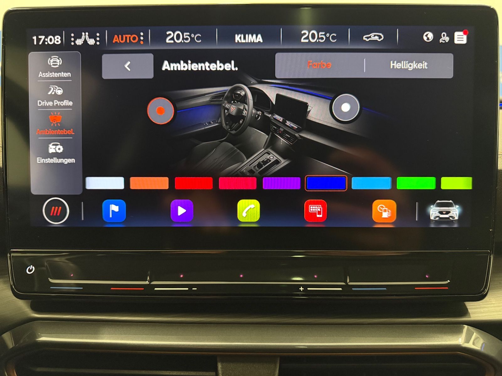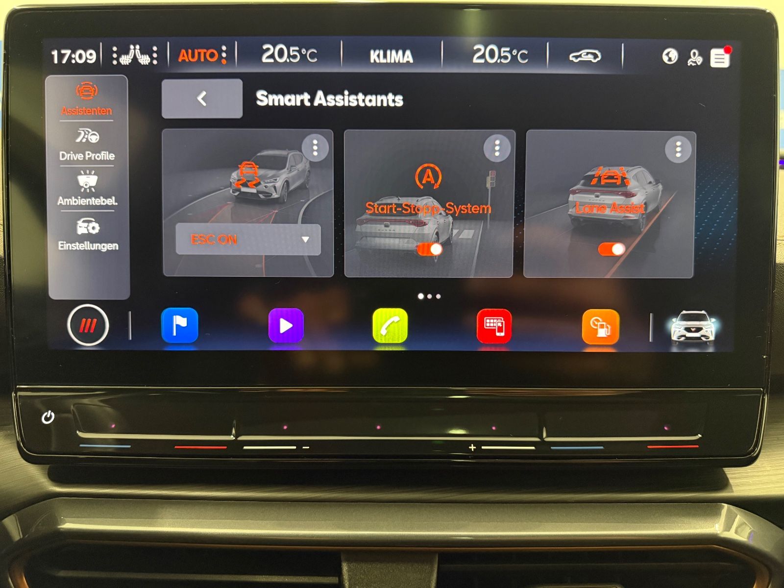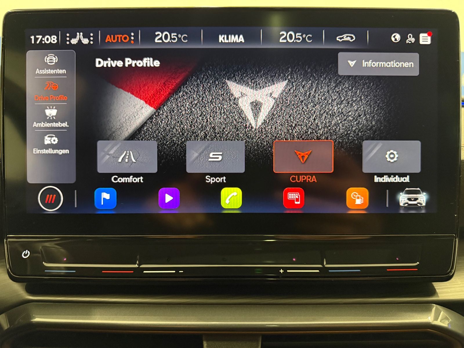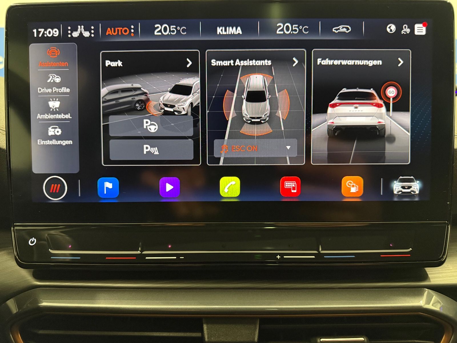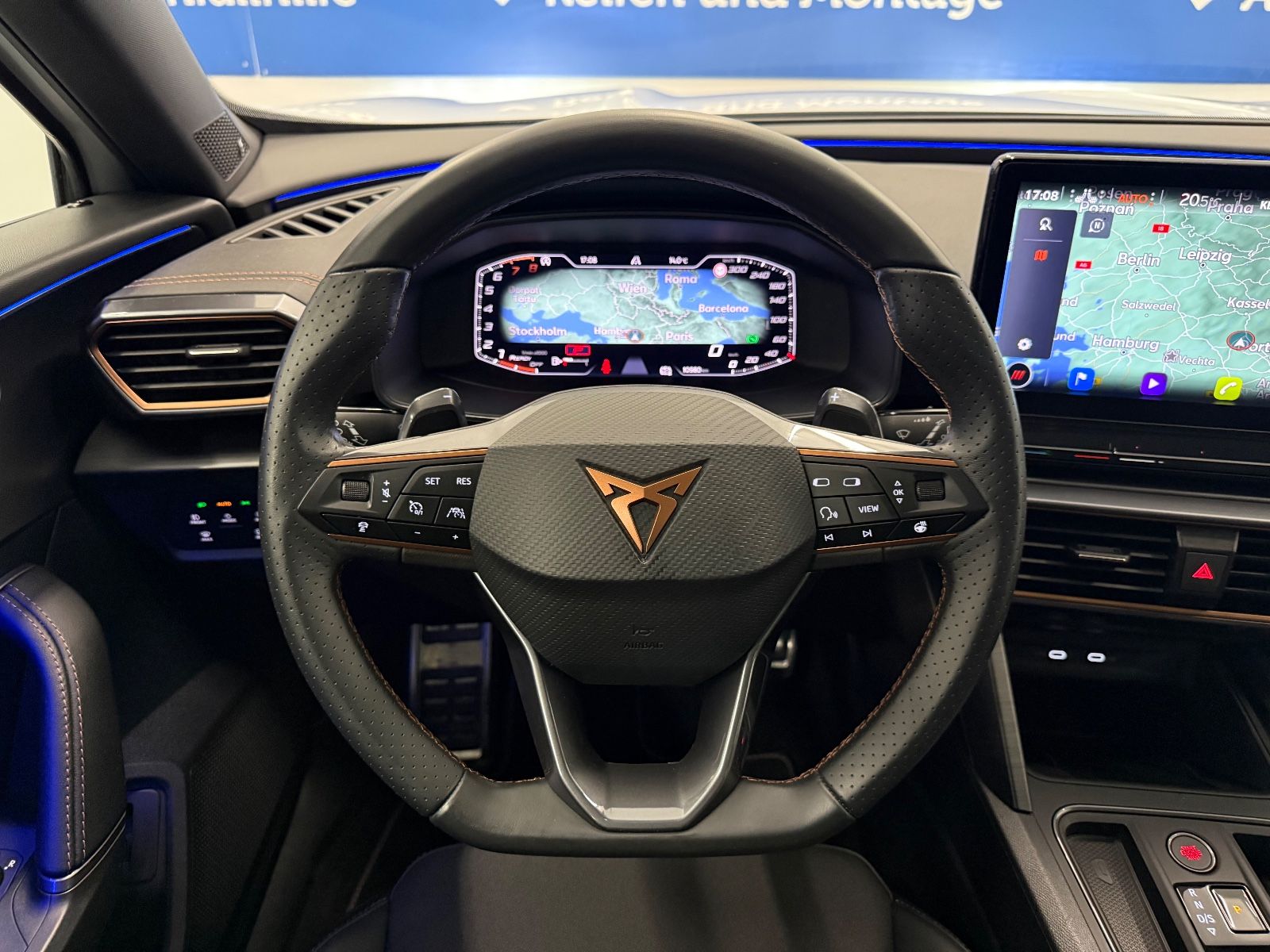 Airbag Beifahrerseite abschaltbar Airbag Fahrer-/Beifahrerseite Ambiente-Beleuchtung Smart Ambient Light Antriebs-Schlupfregelung (ASR) Audio-Navigationssystem mit Touchscreen Farbbildschirm Blinkleuchten LED in Außenspiegel integriert Bluetooth-Schnittstelle mit Freisprecheinrichtung integriert Dachhimmel schwarz Dachreling schwarz, hochglänzend Differentialsperre (Vorderachse) Doppeltonhorn Einstiegsleisten (Aluminium) vorn, beleuchtet Fahrassistenz-Paket: Stau- und Notfallassistent Fahrassistenz-Paket: Travel Assist Fahrassistenz-System: Adaptive Fahrwerksregelung (DCC) Fahrassistenz-System: Fahrprofilauswahl (CUPRA Drive Profile) Fahrassistenz-System: Parklenkassistent mit Einparkhilfe vorn und hinten Fensterheber elektrisch vorn + hinten mit Komfortschaltung Fensterzierleisten schwarz hochglänzend Gepäckraumabdeckung / Rollo Heckleuchten Voll-LED mit dynamischem Lichtband (Infinite Light) Isofix-Aufnahmen für Kindersitz an Rücksitz Karosserie: 5-türig Klimaanlage Climatronic 3-Zonen Kombiinstrument digital (virtual cockpit) Kopf-Airbag-System Laderaumboden variabel und herausnehmbar Licht- und Sicht-Paket LM-Felgen Mittelarmlehne hinten Mittelkonsole vorn mit Mittelarmlehne Becherhalter Ablagebox und Luftausströmer hinten Motor 2,0 Ltr. - 180 kW TSI Notrufsystem Otto-Partikelfilter (OPF) Parkbremse elektrisch Radioempfang digital (DAB+) Radstand 2679 mm Reserverad als Notrad Rückfahrkamera Rücksitzlehne geteilt/klappbar (1/3-2/3) Rücksitzlehnen umklappbar mit Fernentriegelung im Kofferraum Schadstoffarm nach Abgasnorm Euro 6d Seitenairbag Seitenairbag vorn mitte (Central Airbag) Seitenscheiben hinten und Heckscheibe abgedunkelt Sitz vorn links höhenverstellbar Sitz vorn rechts höhenverstellbar Sitzbezug / Polsterung: Stoff Sonnenblende links mit Spiegel (beleuchtet) Sonnenblende rechts mit Spiegel (beleuchtet) Sport-Schalensitze vorn mit integrierten Kopfstützen Start/Stop-Anlage Steckdose (12V-Anschluß) vorn Steckdose 230V im Gepäckraum USB-Ladeanschlüsse (2-fach, Typ C) für 2.Sitzreihe USB-Schnittstelle vorn (2-fach, Typ C) Verzurrösen Koffer-/Laderaum Warnanlage für Sicherheitsgurt-System Wärmeschutzverglasung Alle Angaben ohne Gewähr