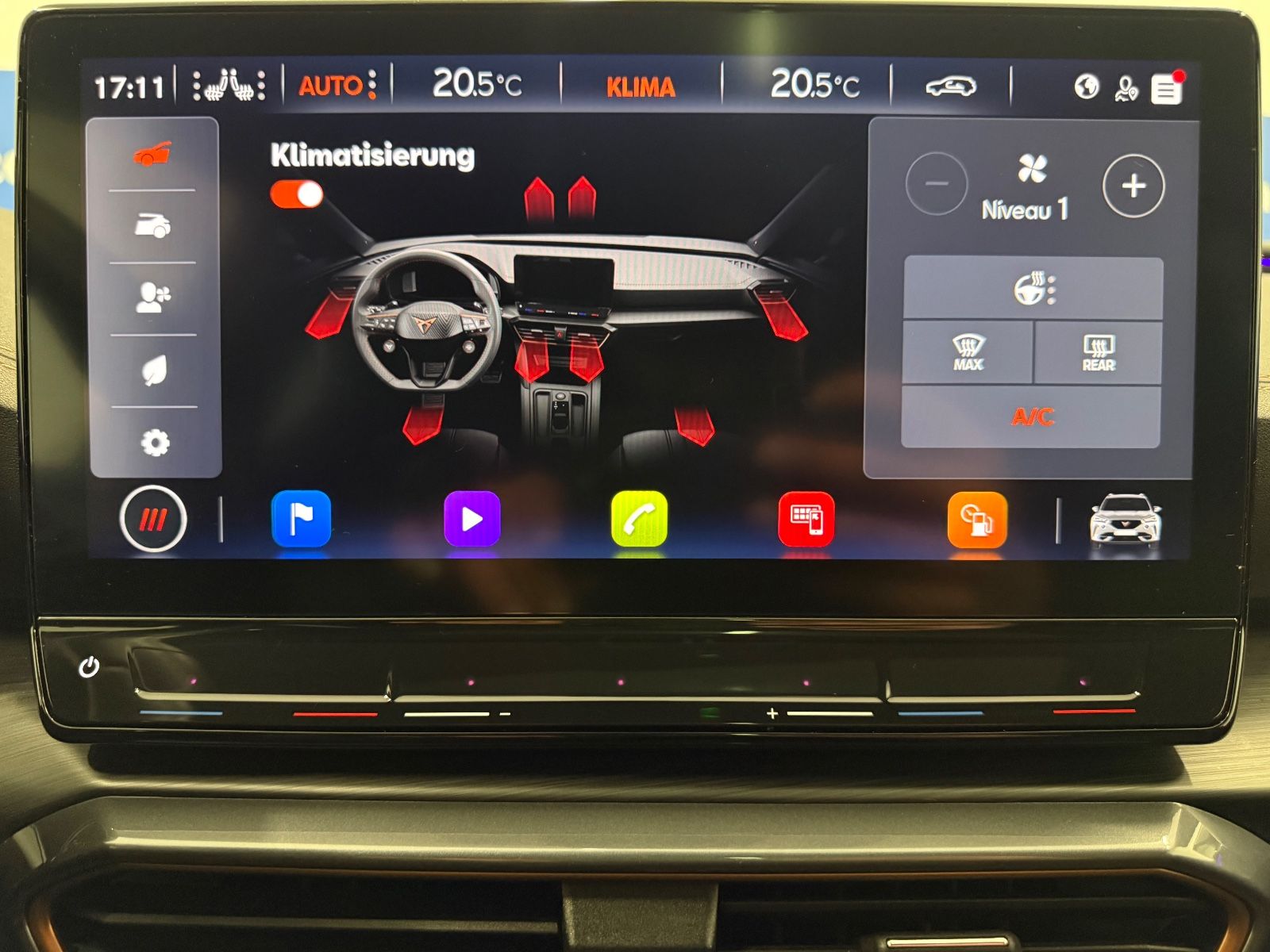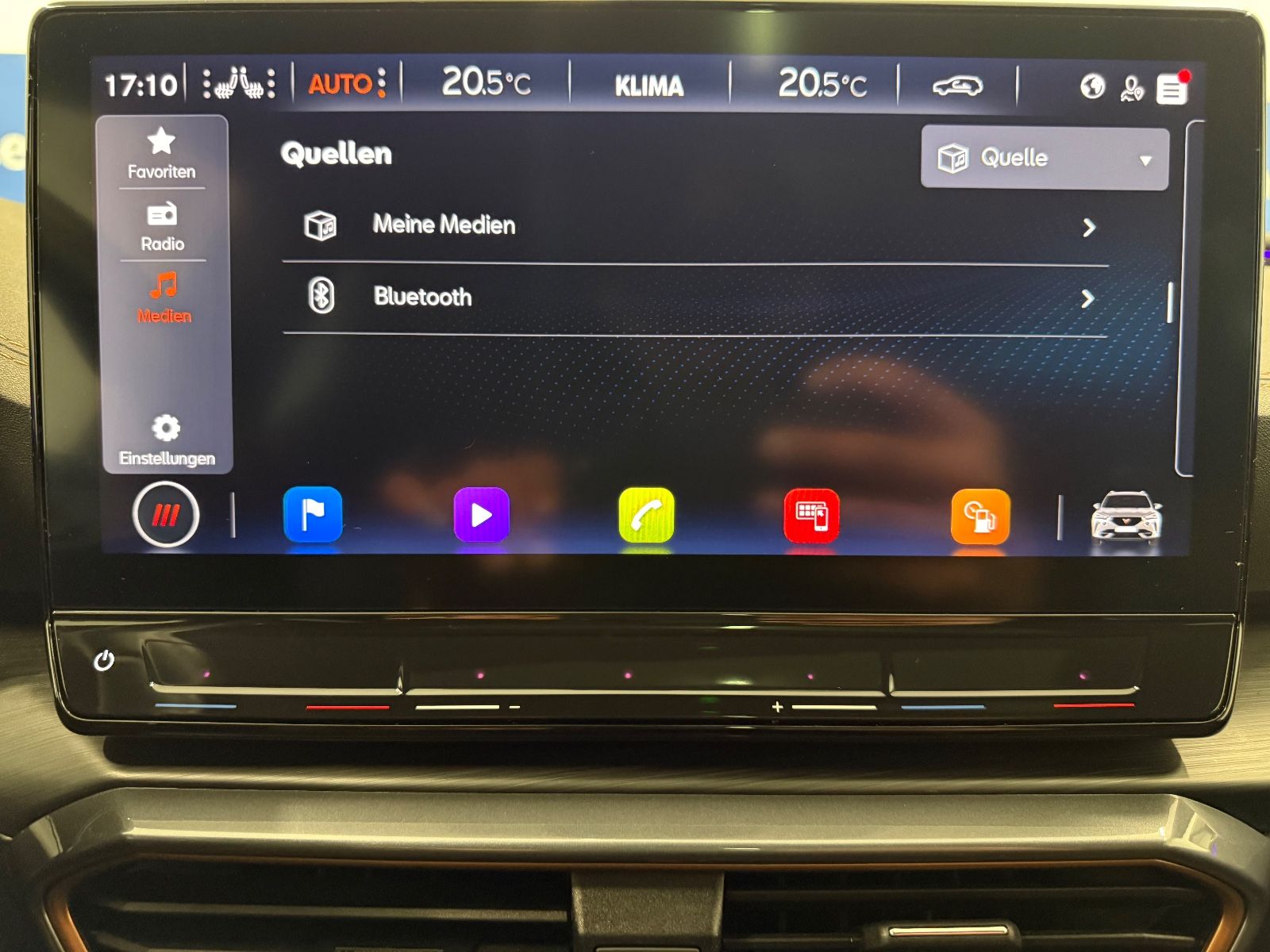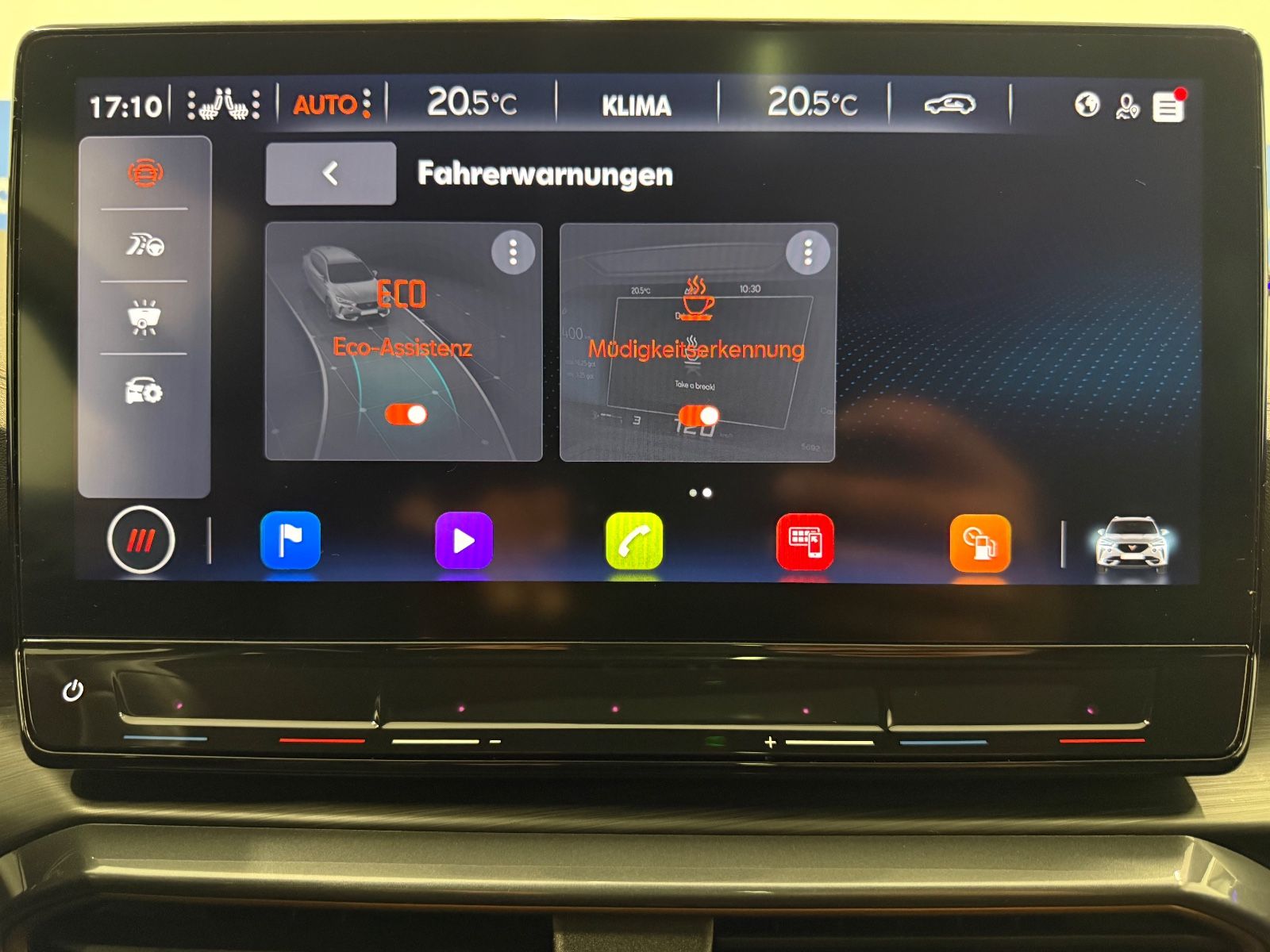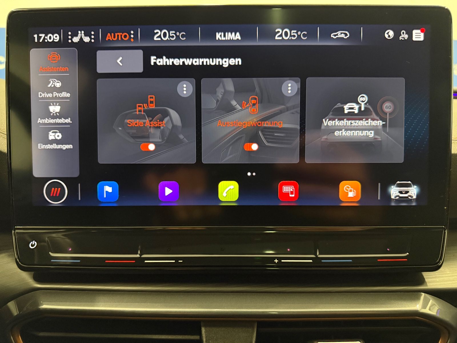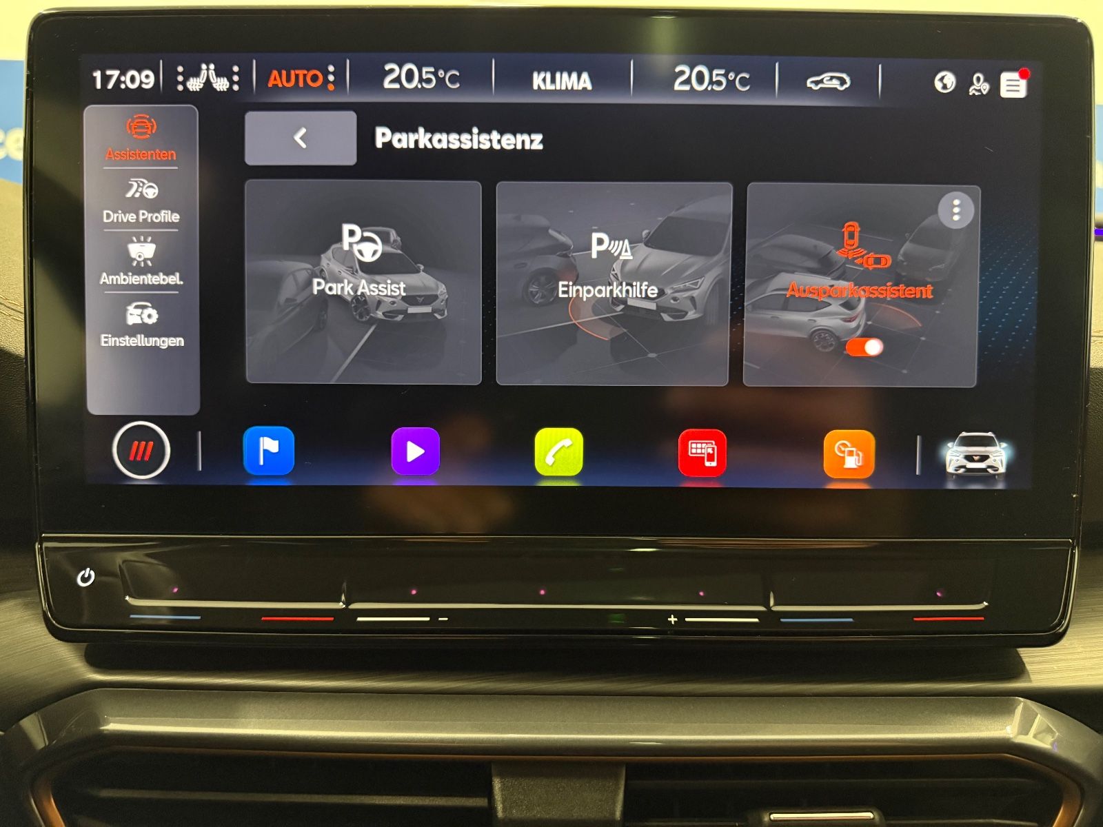 Airbag Beifahrerseite abschaltbar Airbag Fahrer-/Beifahrerseite Ambiente-Beleuchtung Smart Ambient Light Antriebs-Schlupfregelung (ASR) Audio-Navigationssystem mit Touchscreen Farbbildschirm Blinkleuchten LED in Außenspiegel integriert Bluetooth-Schnittstelle mit Freisprecheinrichtung integriert Dachhimmel schwarz Dachreling schwarz, hochglänzend Differentialsperre (Vorderachse) Doppeltonhorn Einstiegsleisten (Aluminium) vorn, beleuchtet Fahrassistenz-Paket: Stau- und Notfallassistent Fahrassistenz-Paket: Travel Assist Fahrassistenz-System: Adaptive Fahrwerksregelung (DCC) Fahrassistenz-System: Fahrprofilauswahl (CUPRA Drive Profile) Fahrassistenz-System: Parklenkassistent mit Einparkhilfe vorn und hinten Fensterheber elektrisch vorn + hinten mit Komfortschaltung Fensterzierleisten schwarz hochglänzend Gepäckraumabdeckung / Rollo Heckleuchten Voll-LED mit dynamischem Lichtband (Infinite Light) Isofix-Aufnahmen für Kindersitz an Rücksitz Karosserie: 5-türig Klimaanlage Climatronic 3-Zonen Kombiinstrument digital (virtual cockpit) Kopf-Airbag-System Laderaumboden variabel und herausnehmbar Licht- und Sicht-Paket LM-Felgen Mittelarmlehne hinten Mittelkonsole vorn mit Mittelarmlehne Becherhalter Ablagebox und Luftausströmer hinten Motor 2,0 Ltr. - 180 kW TSI Notrufsystem Otto-Partikelfilter (OPF) Parkbremse elektrisch Radioempfang digital (DAB+) Radstand 2679 mm Reserverad als Notrad Rückfahrkamera Rücksitzlehne geteilt/klappbar (1/3-2/3) Rücksitzlehnen umklappbar mit Fernentriegelung im Kofferraum Schadstoffarm nach Abgasnorm Euro 6d Seitenairbag Seitenairbag vorn mitte (Central Airbag) Seitenscheiben hinten und Heckscheibe abgedunkelt Sitz vorn links höhenverstellbar Sitz vorn rechts höhenverstellbar Sitzbezug / Polsterung: Stoff Sonnenblende links mit Spiegel (beleuchtet) Sonnenblende rechts mit Spiegel (beleuchtet) Sport-Schalensitze vorn mit integrierten Kopfstützen Start/Stop-Anlage Steckdose (12V-Anschluß) vorn Steckdose 230V im Gepäckraum USB-Ladeanschlüsse (2-fach, Typ C) für 2.Sitzreihe USB-Schnittstelle vorn (2-fach, Typ C) Verzurrösen Koffer-/Laderaum Warnanlage für Sicherheitsgurt-System Wärmeschutzverglasung Alle Angaben ohne Gewähr