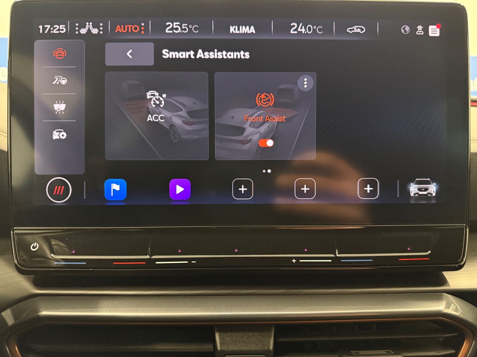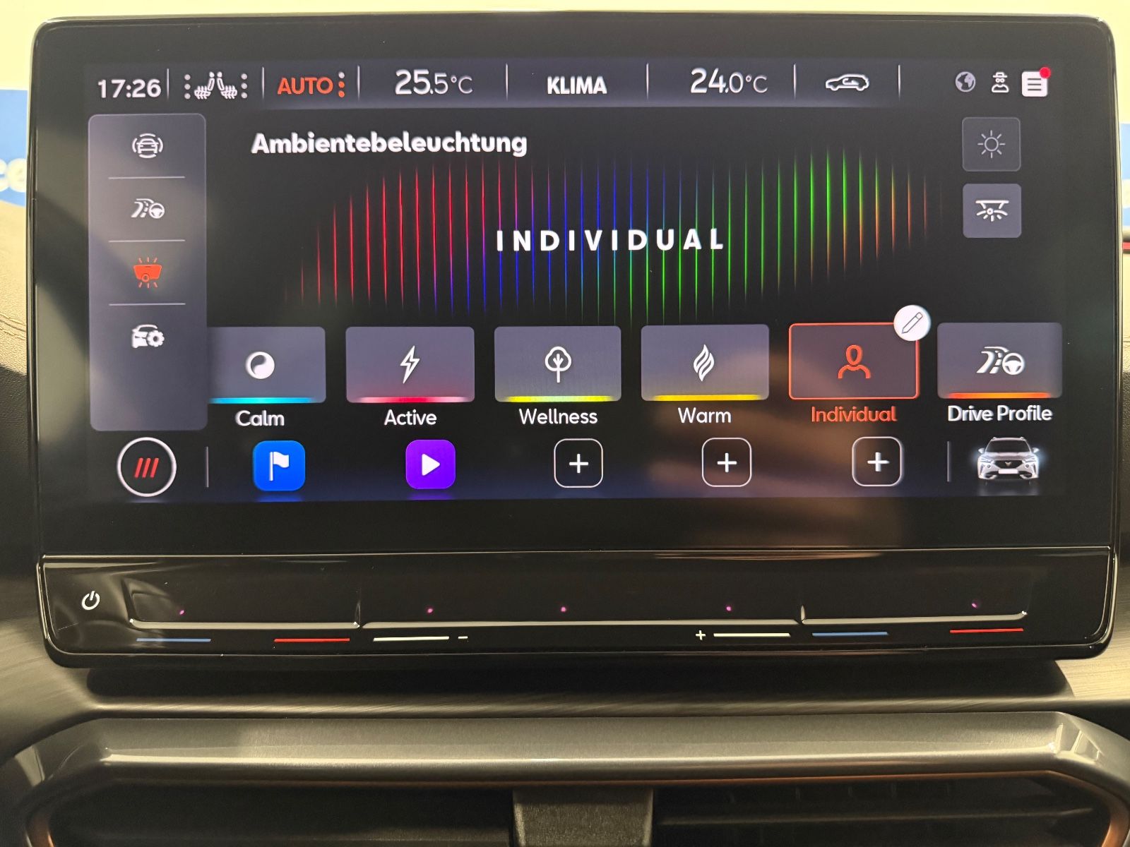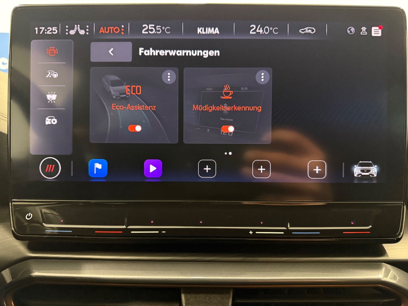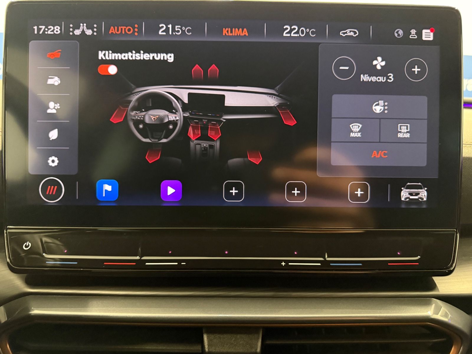 Airbag Beifahrerseite abschaltbar Airbag Fahrer-/Beifahrerseite Ambiente-Beleuchtung Smart Ambient Light Antriebs-Schlupfregelung (ASR) Audio-Navigationssystem mit Touchscreen Farbbildschirm Außenspiegel elektr. verstell-, heiz- und anklappbar mit Spiegelabsenkung und Welcome Light Blinkleuchten LED in Außenspiegel integriert Bluetooth-Schnittstelle mit Freisprecheinrichtung integriert Dachhimmel schwarz Dachreling schwarz, hochglänzend Differentialsperre (Vorderachse) Doppeltonhorn Einstiegsleisten (Aluminium) vorn, beleuchtet Fahrassistenz-Paket L Fahrassistenz-Paket: Stau- und Notfallassistent Fahrassistenz-Paket: Travel Assist Fahrassistenz-System: Adaptive Fahrwerksregelung (DCC) Fahrassistenz-System: Fahrprofilauswahl (CUPRA Drive Profile) Fahrassistenz-System: Parklenkassistent mit Einparkhilfe vorn und hinten Fensterheber elektrisch vorn + hinten mit Komfortschaltung Fensterzierleisten schwarz hochglänzend Gepäckraumabdeckung / Rollo Heckleuchten Voll-LED mit dynamischem Lichtband (Infinite Light) Isofix-Aufnahmen für Kindersitz an Rücksitz Karosserie: 5-türig Klimaanlage Climatronic 3-Zonen Kombiinstrument digital (virtual cockpit) Kopf-Airbag-System Laderaumboden variabel und herausnehmbar Lendenwirbelstütze Sitz vorn links, verstellbar Lendenwirbelstütze Sitz vorn rechts, verstellbar Licht- und Sicht-Paket Mittelarmlehne hinten Mittelkonsole vorn mit Mittelarmlehne Becherhalter Ablagebox und Luftausströmer hinten Motor 2,0 Ltr. - 180 kW TSI Notrufsystem Otto-Partikelfilter (OPF) Parkbremse elektrisch Radioempfang digital (DAB+) Rückfahrkamera Rücksitzlehne geteilt/klappbar (1/3-2/3) Rücksitzlehnen umklappbar mit Fernentriegelung im Kofferraum Schadstoffarm nach Abgasnorm Euro 6d Seitenairbag Seitenairbag vorn mitte (Central Airbag) Seitenscheiben hinten und Heckscheibe abgedunkelt Sitz vorn links höhenverstellbar Sitz vorn rechts höhenverstellbar Sitzbezug / Polsterung: Stoff Sonnenblende links mit Spiegel (beleuchtet) Sonnenblende rechts mit Spiegel (beleuchtet) Sport-Schalensitze vorn mit integrierten Kopfstützen Start/Stop-Anlage Steckdose (12V-Anschluß) vorn Steckdose 230V im Gepäckraum USB-Ladeanschlüsse (2-fach, Typ C) für 2.Sitzreihe USB-Schnittstelle vorn (2-fach, Typ C) Verzurrösen Koffer-/Laderaum Warnanlage für Sicherheitsgurt-System Wärmeschutzverglasung Alle Angaben ohne Gewähr