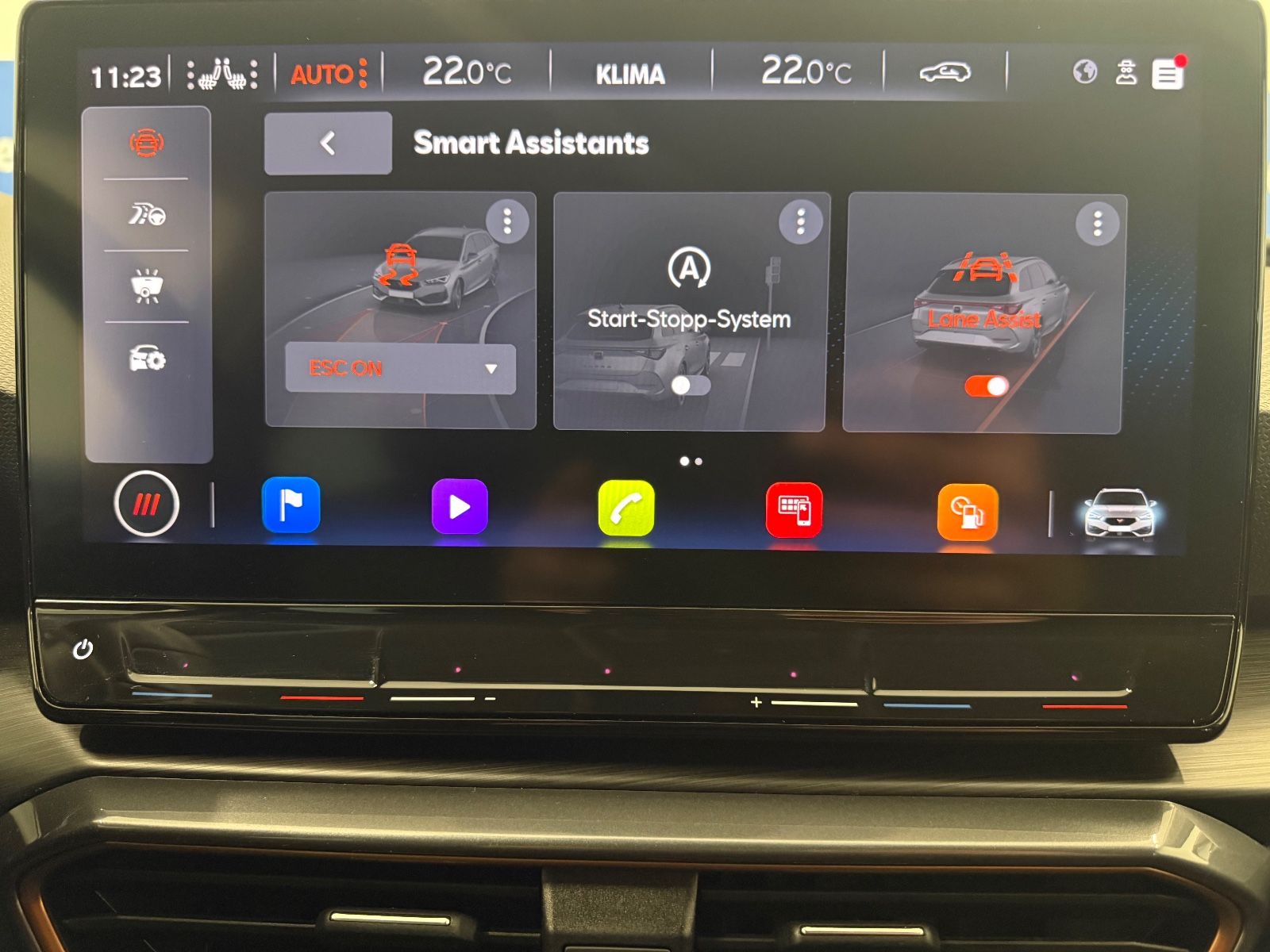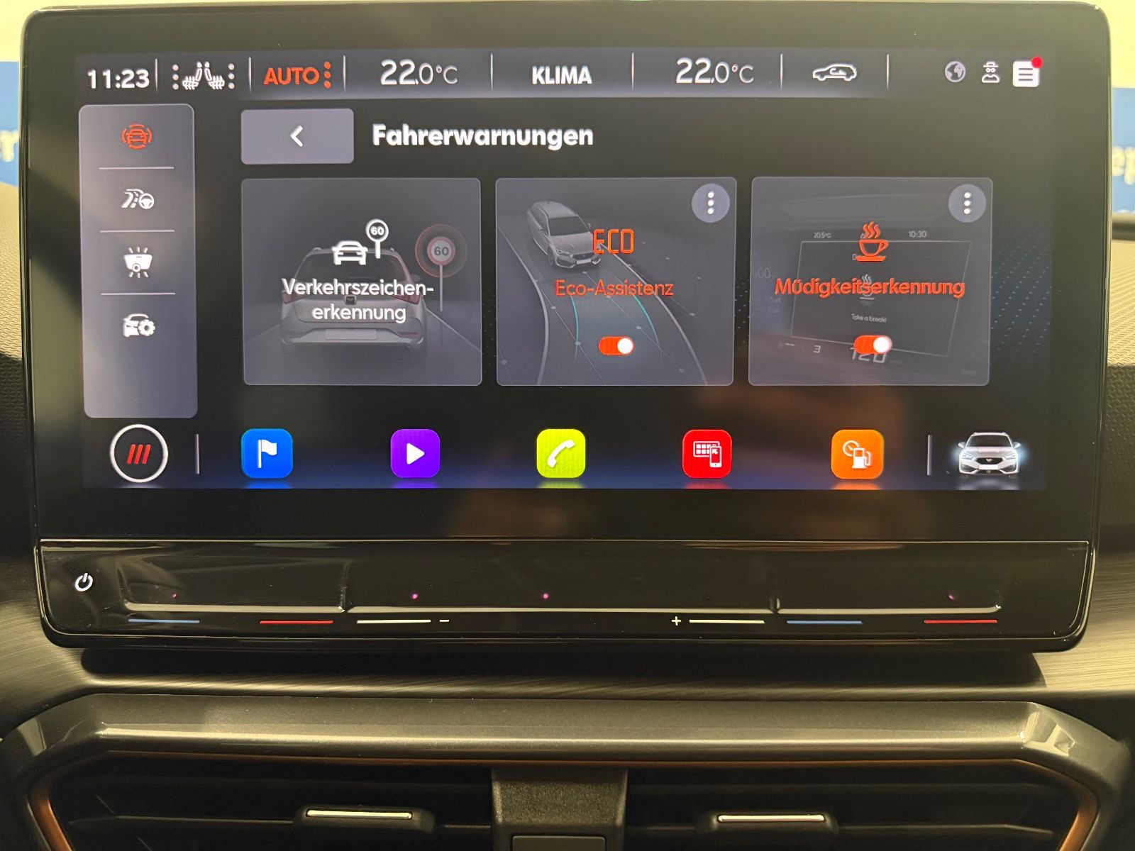 6 Lautsprecher Airbag Beifahrerseite abschaltbar Airbag Fahrer-/Beifahrerseite Antriebs-Schlupfregelung (ASR) Außenspiegel elektr. verstell-, heiz- und anklappbar mit Spiegelabsenkung und Welcome Light Blinkleuchten LED in Außenspiegel integriert Dachreling schwarz, hochglänzend Doppeltonhorn Einstiegsleisten (Aluminium) vorn, beleuchtet Fahrassistenz-System: Fahrprofilauswahl (CUPRA Drive Profile) Fensterheber elektrisch vorn + hinten mit Komfortschaltung Fensterzierleisten schwarz hochglänzend Gepäckraumabdeckung / Rollo Heckleuchten LED mit dynamischem Blinklicht Heckleuchten Voll-LED mit Lichtband (Infinite Light) Isofix-Aufnahmen für Kindersitz an Rücksitz Karosserie: 5-türig Klimaanlage Climatronic 3-Zonen Kombiinstrument digital (virtual cockpit) Kopf-Airbag-System Laderaumboden variabel und herausnehmbar Lendenwirbelstütze Sitz vorn links, verstellbar Lendenwirbelstütze Sitz vorn rechts, verstellbar Licht- und Sicht-Paket LM-Felgen Mittelarmlehne hinten Mittelkonsole vorn mit Mittelarmlehne Becherhalter Ablagebox und Luftausströmer hinten Mobile Online Dienste Cupra Connect Motor 2,0 Ltr. - 110 kW TDI Notrufsystem Otto-Partikelfilter (OPF) Parkbremse elektrisch Radioempfang digital (DAB+) Rücksitzlehne geteilt/klappbar (1/3-2/3) Rücksitzlehnen umklappbar mit Fernentriegelung im Kofferraum Schadstoffarm nach Abgasnorm Euro 6d Seitenairbag Seitenairbag vorn mitte (Central Airbag) Seitenscheiben hinten und Heckscheibe abgedunkelt Spiegel (beleuchtet) Sonnenblende rechts mit Spiegel (beleuchtet) Sport-Schalensitze vorn mit integrierten Kopfstützen Sprachsteuerungs-System Start/Stop-Anlage Steckdose (12V-Anschluß) im Koffer-/Laderaum USB-Ladeanschlüsse (2-fach, Typ C) für 2.Sitzreihe USB-Schnittstelle vorn (2-fach, Typ C) Verzurrösen Koffer-/Laderaum Warnanlage für Sicherheitsgurt-System Wärmeschutzverglasung Alle Angaben ohne Gewähr