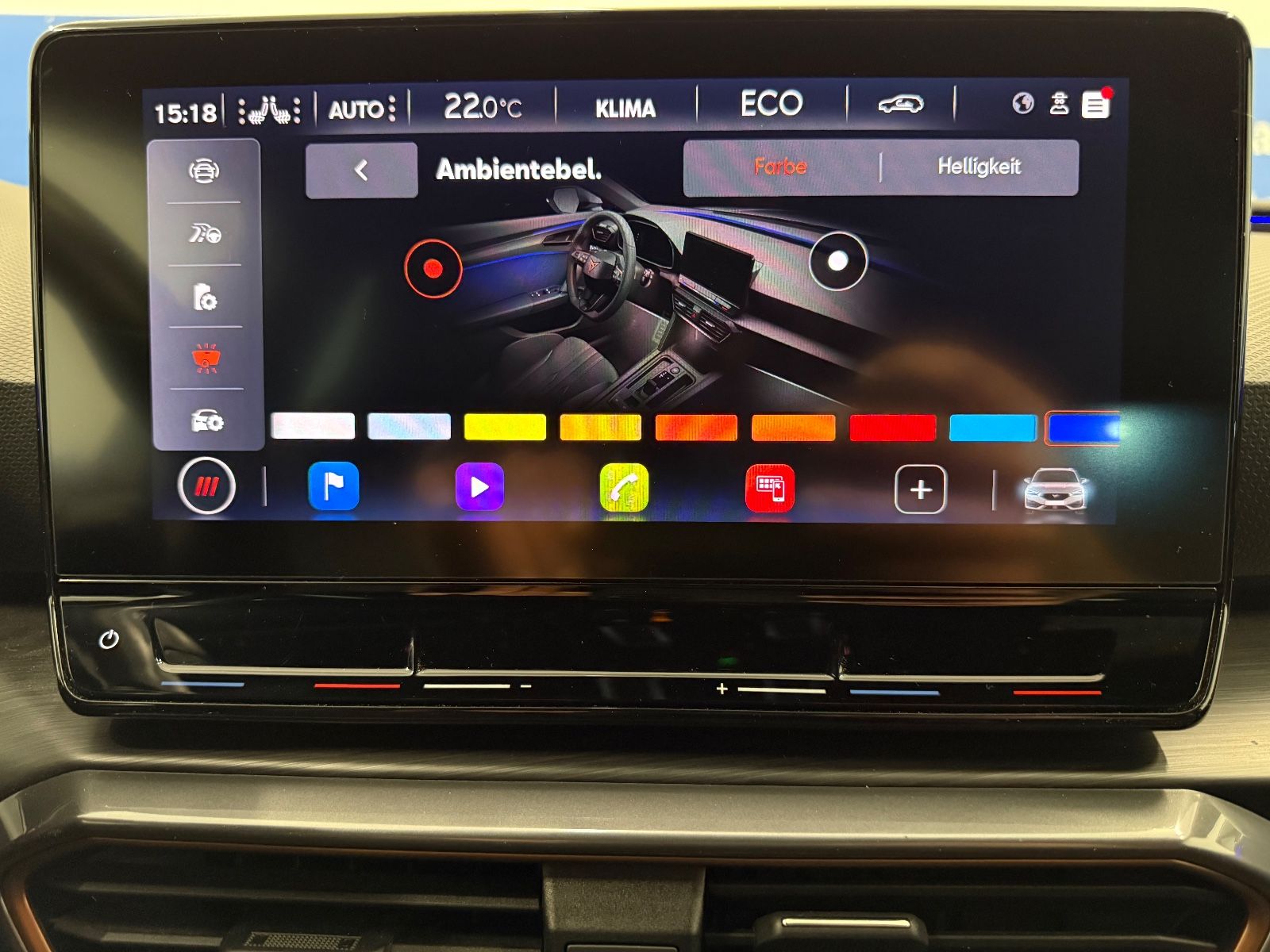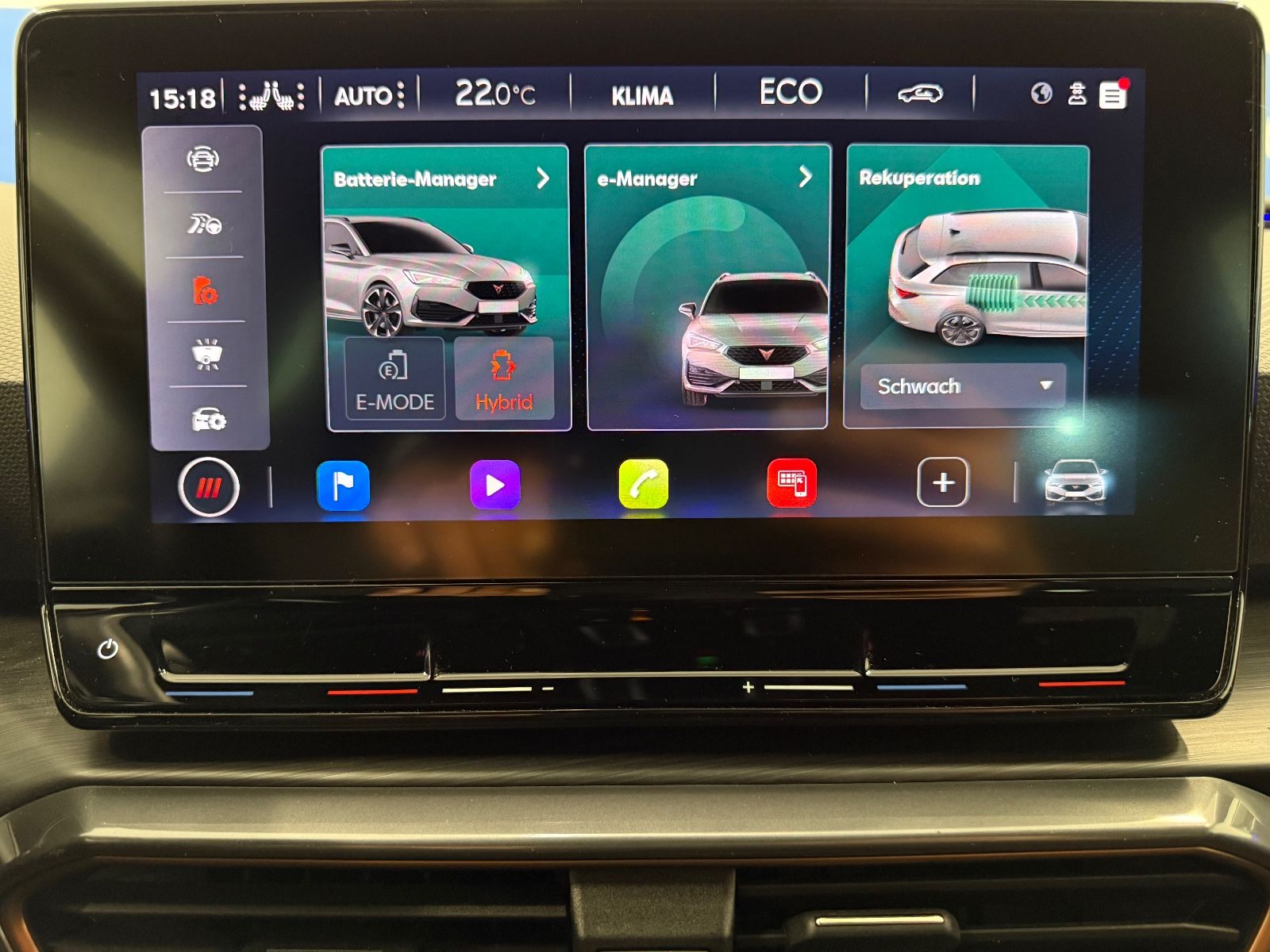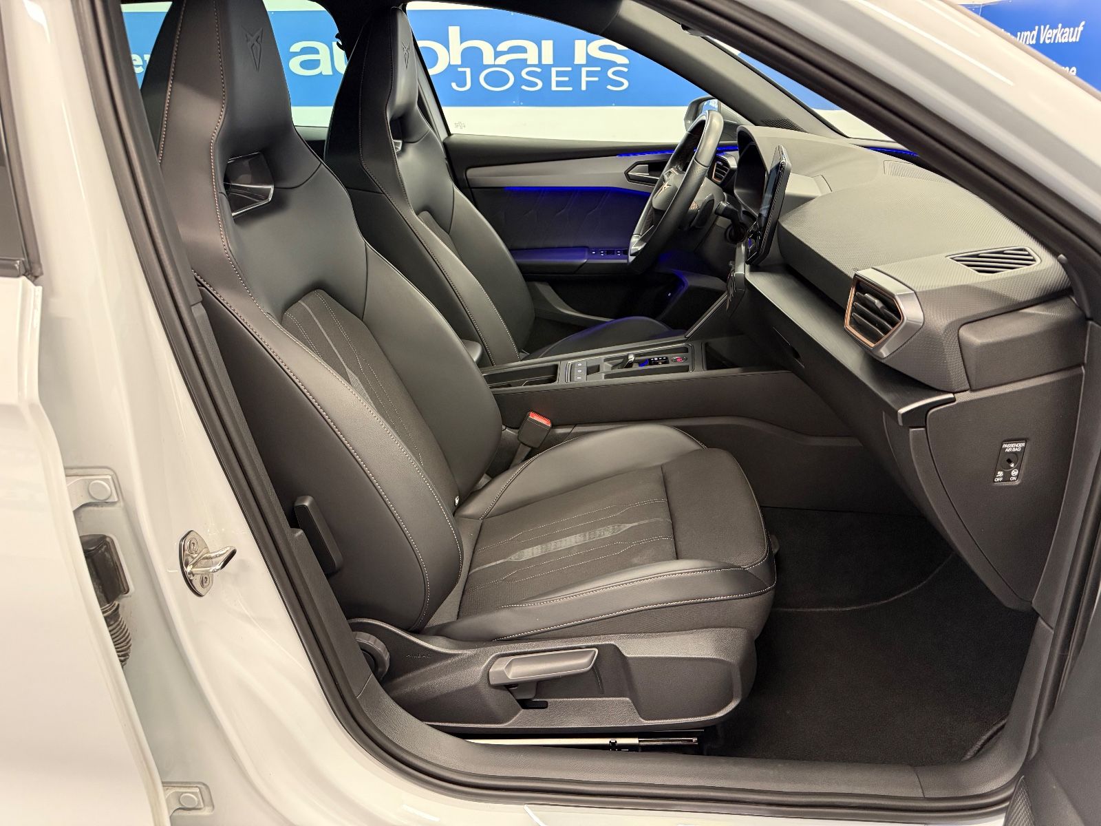 6 Lautsprecher Airbag Beifahrerseite abschaltbar Airbag Fahrer-/Beifahrerseite Akustischer Fußgängerschutz Außensound (e-sound / AVAS) Ambiente-Beleuchtung Smart Ambient Light Antriebs-Schlupfregelung (ASR) Audio-Navigationssystem mit Touchscreen Farbbildschirm Außenspiegel elektr. verstell-, heiz- und anklappbar mit Spiegelabsenkung und Welcome Light Blinkleuchten LED in Außenspiegel integriert Dachreling schwarz, hochglänzend Doppeltonhorn Einstiegsleisten (Aluminium) vorn, beleuchtet Elektron. Differentialsperre (XDS) Fahrassistenz-System: Adaptive Fahrwerksregelung (DCC) Fahrassistenz-System: Fahrprofilauswahl (CUPRA Drive Profile) Fensterheber elektrisch vorn + hinten mit Komfortschaltung Fensterzierleisten schwarz hochglänzend Gepäckraumabdeckung / Rollo Heckleuchten LED mit dynamischem Blinklicht Heckleuchten Voll-LED mit dynamischem Lichtband (Infinite Light) Hybrid 180 kW (Motor 1,4 Ltr. - 110 kW TSI) Induktionsladeschale für Smartphone Isofix-Aufnahmen für Kindersitz an Rücksitz Karosserie: 5-türig Klimaanlage Climatronic 3-Zonen Kombiinstrument digital (virtual cockpit) Kopf-Airbag-System Laderaumboden variabel und herausnehmbar Lendenwirbelstütze Sitz vorn links, verstellbar Lendenwirbelstütze Sitz vorn rechts, verstellbar Licht- und Sicht-Paket LM-Felgen Mittelarmlehne hinten Mittelkonsole vorn mit Mittelarmlehne Becherhalter Ablagebox und Luftausströmer hinten Mobile Online Dienste Cupra Connect Notrufsystem Parkbremse elektrisch Radioempfang digital (DAB+) Reifen-Reparaturset Rücksitzlehne geteilt/klappbar (1/3-2/3) Rücksitzlehnen umklappbar mit Fernentriegelung im Kofferraum Schadstoffarm nach Abgasnorm Euro 6d Seitenairbag Seitenairbag vorn mitte (Central Airbag) Seitenscheiben hinten und Heckscheibe abgedunkelt Sitz vorn links höhenverstellbar Sitz vorn rechts höhenverstellbar Sitzbezug / Polsterung: Stoff Sonnenblende links mit Spiegel (beleuchtet) Sonnenblende rechts mit Spiegel (beleuchtet) Sport-Schalensitze vorn mit integrierten Kopfstützen Start/Stop-Anlage Steckdose (12V-Anschluß) im Koffer-/Laderaum USB-Ladeanschlüsse (2-fach, Typ C) für 2.Sitzreihe USB-Schnittstelle vorn (2-fach, Typ C) Verzurrösen Koffer-/Laderaum Warnanlage für Sicherheitsgurt-System Wärmeschutzverglasung Alle Angaben ohne Gewähr
