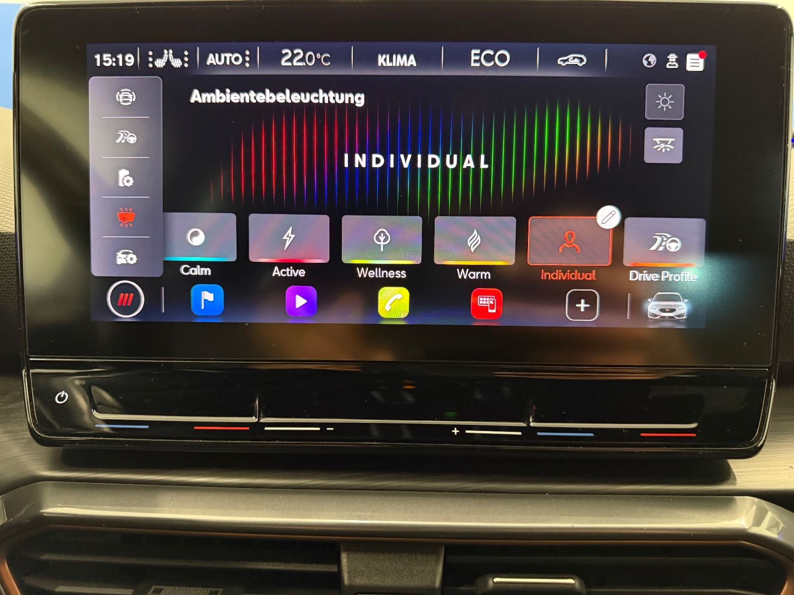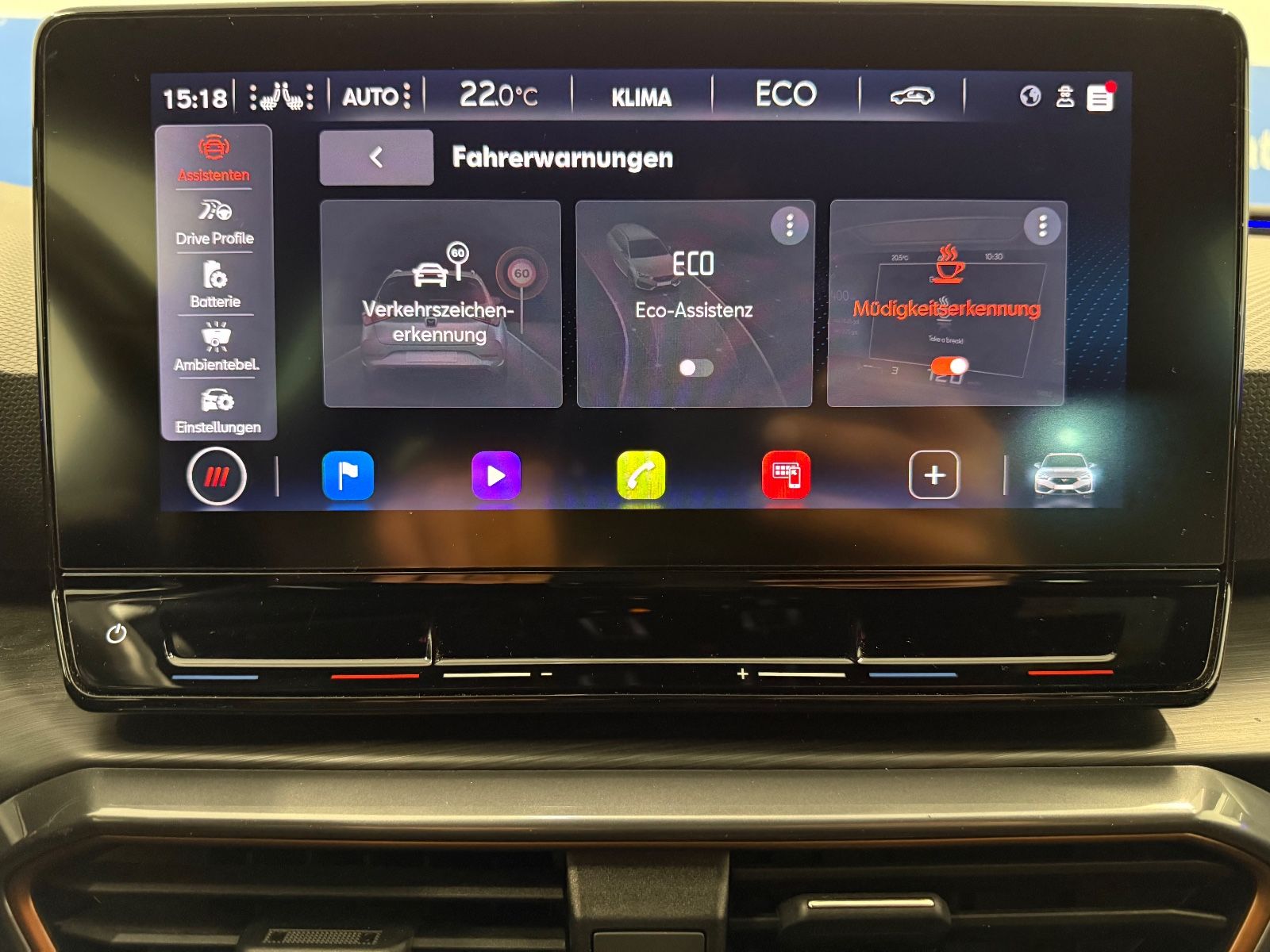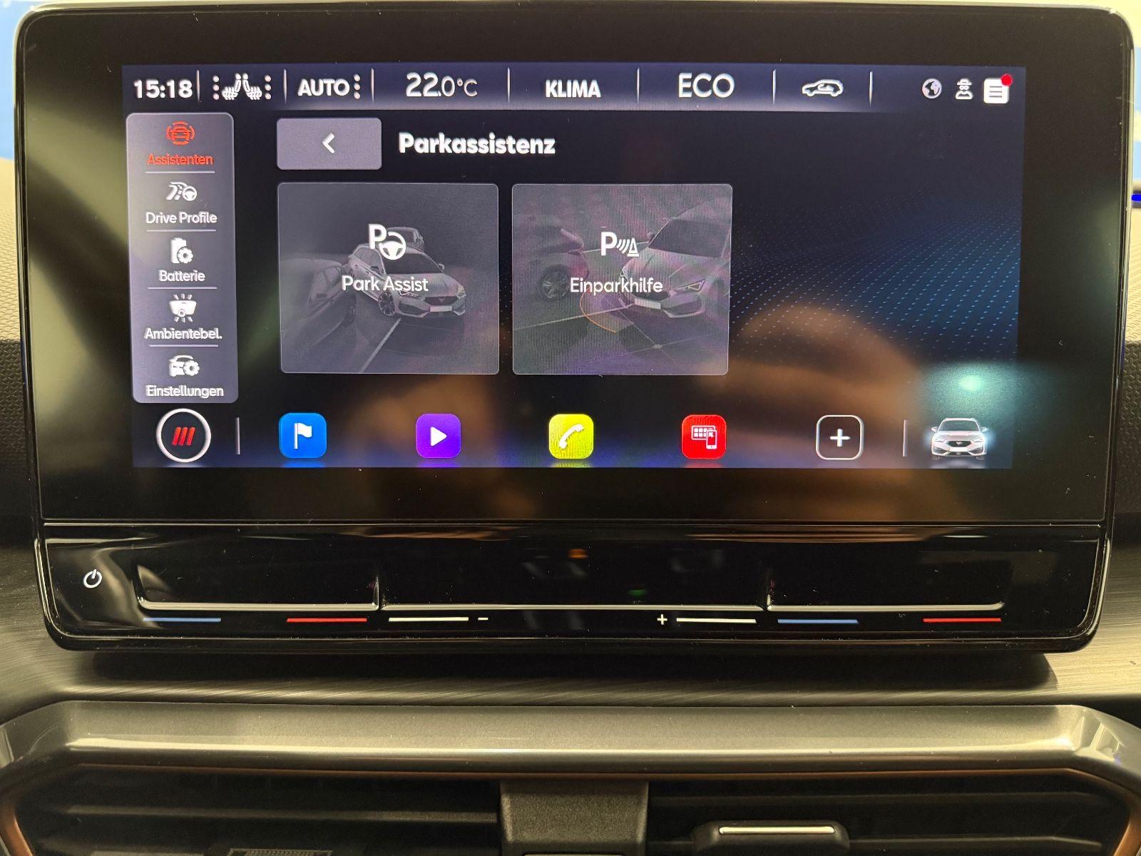 6 Lautsprecher Airbag Beifahrerseite abschaltbar Airbag Fahrer-/Beifahrerseite Akustischer Fußgängerschutz Außensound (e-sound / AVAS) Ambiente-Beleuchtung Smart Ambient Light Antriebs-Schlupfregelung (ASR) Audio-Navigationssystem mit Touchscreen Farbbildschirm Außenspiegel elektr. verstell-, heiz- und anklappbar mit Spiegelabsenkung und Welcome Light Blinkleuchten LED in Außenspiegel integriert Dachreling schwarz, hochglänzend Doppeltonhorn Einstiegsleisten (Aluminium) vorn, beleuchtet Elektron. Differentialsperre (XDS) Fahrassistenz-System: Adaptive Fahrwerksregelung (DCC) Fahrassistenz-System: Fahrprofilauswahl (CUPRA Drive Profile) Fensterheber elektrisch vorn + hinten mit Komfortschaltung Fensterzierleisten schwarz hochglänzend Gepäckraumabdeckung / Rollo Heckleuchten LED mit dynamischem Blinklicht Heckleuchten Voll-LED mit dynamischem Lichtband (Infinite Light) Hybrid 180 kW (Motor 1,4 Ltr. - 110 kW TSI) Induktionsladeschale für Smartphone Isofix-Aufnahmen für Kindersitz an Rücksitz Karosserie: 5-türig Klimaanlage Climatronic 3-Zonen Kombiinstrument digital (virtual cockpit) Kopf-Airbag-System Laderaumboden variabel und herausnehmbar Lendenwirbelstütze Sitz vorn links, verstellbar Lendenwirbelstütze Sitz vorn rechts, verstellbar Licht- und Sicht-Paket LM-Felgen Mittelarmlehne hinten Mittelkonsole vorn mit Mittelarmlehne Becherhalter Ablagebox und Luftausströmer hinten Mobile Online Dienste Cupra Connect Notrufsystem Parkbremse elektrisch Radioempfang digital (DAB+) Reifen-Reparaturset Rücksitzlehne geteilt/klappbar (1/3-2/3) Rücksitzlehnen umklappbar mit Fernentriegelung im Kofferraum Schadstoffarm nach Abgasnorm Euro 6d Seitenairbag Seitenairbag vorn mitte (Central Airbag) Seitenscheiben hinten und Heckscheibe abgedunkelt Sitz vorn links höhenverstellbar Sitz vorn rechts höhenverstellbar Sitzbezug / Polsterung: Stoff Sonnenblende links mit Spiegel (beleuchtet) Sonnenblende rechts mit Spiegel (beleuchtet) Sport-Schalensitze vorn mit integrierten Kopfstützen Start/Stop-Anlage Steckdose (12V-Anschluß) im Koffer-/Laderaum USB-Ladeanschlüsse (2-fach, Typ C) für 2.Sitzreihe USB-Schnittstelle vorn (2-fach, Typ C) Verzurrösen Koffer-/Laderaum Warnanlage für Sicherheitsgurt-System Wärmeschutzverglasung Alle Angaben ohne Gewähr