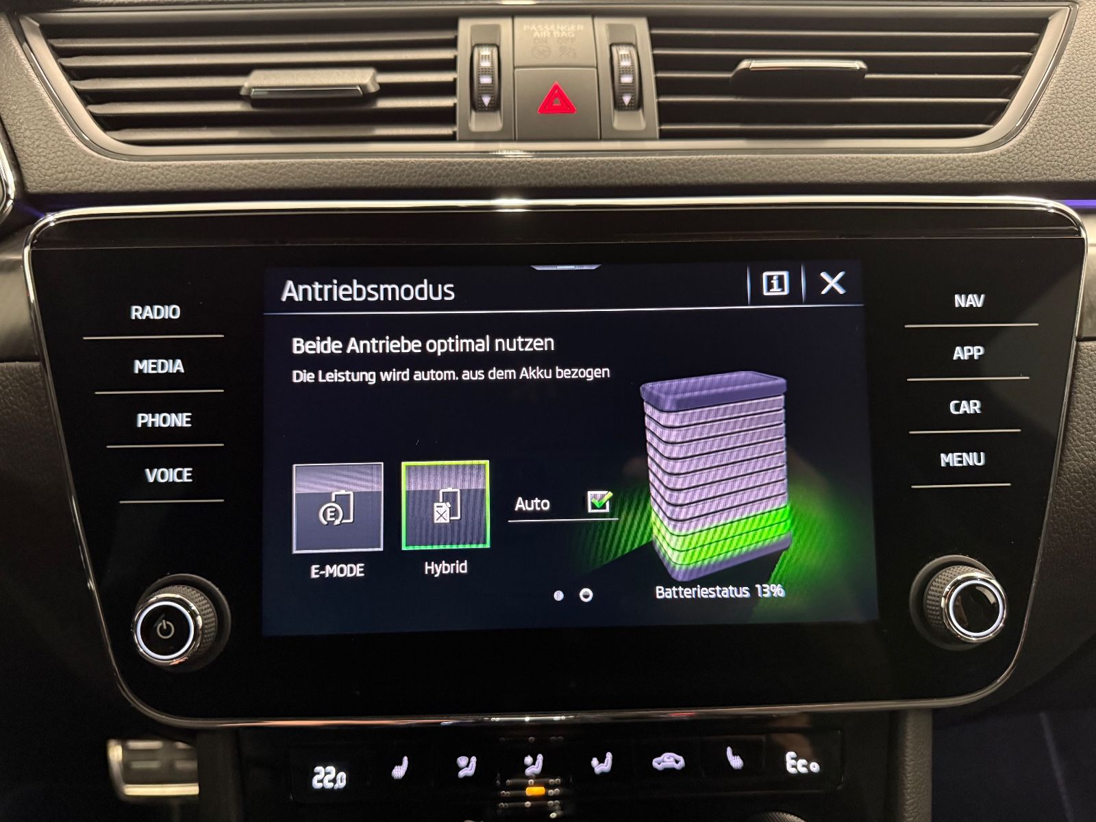 Ablagefach für Regenschirm Airbag Beifahrerseite abschaltbar, Airbag Fahrer-/Beifahrerseite Akustischer Fußgängerschutz Außensound (e-sound) Antriebs-Schlupfregelung (ASR) Ausstattungs-Paket: Green tec Außenspiegel mit Umfeldleucht Außenspiegel Wagenfarbe Bremsassistent Bremsenergierückgewinnung Brillenfach Chromzierleisten an Seitenfenstern Dachreling Durchladeeinrichtung (Mittelarmlehne hinten) Edelstahlpedale Sportdesign Elektromotor 85 kW (Hybridantrieb) Elektron. Querdifferentialsperre (XDS) Fahrassistenz-System: Adaptive Fahrwerksregelung (DCC) Fahrassistenz-System: Auffahrwarnsystem mit City-Notbremsfunktion (Frontradar-Assistent) Fahrassistenz-System: Berganfahr-Assistent (Hill-Holder) Fahrassistenz-System: Multikollisionsbremse (Multi Collision Brake) Fensterheber elektrisch vorn + hinten Handschuhfach beleuchtet Heckscheibenwischer Hybrid 160 kW (Motor 1,4 Ltr. - 115 kW) Infotainment-Paket Amundsen Infotainment-Paket Bolero Innenausstattung: Dekoreinlagen Dark Carbon Innenspiegel mit Abblendautomatik Isofix-Aufnahmen für Kindersitz an Rücksitz Karosserie: 5-türig Klimaanlage Climatronic 2-Zonen Knieairbag Fahrerseite Kofferraum / Heckklappe elektrisch betätigt (öffnen + schliessen) Kombiinstrument digital (virtual cockpit) Kopf-Airbag-System Kopfstützen hinten Kopfstützen vorn Lehnenentriegelung der Rücksitzlehne im Kofferraum Lendenwirbelstütze Sitz vorn links Lenkrad (Sport/Leder - 3-Speichen) mit Multifunktion Lenksäule (Lenkrad) höhenverstellbar Lenksäule (Lenkrad) längsverstellbar Lichtassistent (Coming Home, Leaving Home) Line-In-Audioanschluss in Mittelkonsole LM-Felgen Modellpflege Motor-Schleppmoment-Regulator (MSR) Multifunktionsanzeige Nebelscheinwerfer LED Nebelscheinwerfer mit Abbiegelicht Notrufsystem Otto-Partikelfilter (OPF) Radioempfang digital (DAB+) Reifen-Reparaturkit Rücksitzlehne geteilt/klappbar Schadstoffarm nach Abgasnorm Euro 6d Schalt-/Wählhebelgriff Leder Scheibenwaschdüsen heizbar Scheibenwischer Aero (Flachblattscheibenwischer) Scheinwerfer LED mit adaptiver Lichtverteilung (AFS) Seitenairbag vorn Seitenscheiben hinten und Heckscheibe abgedunkelt (SunSet) Servolenkung elektronisch (Servotronic) Sitz vorn links höhenverstellbar Sitz vorn rechts höhenverstellbar Sitzbezug / Polsterung: Alcantara/Leder Sitze vorn elektr. verstellbar (mit Memory) Sitzheizung vorn SmartLink (MirrorLink, Apple CarPlay und Android Auto) Sondermodell Sportline Sonnenblende links mit Spiegel Sonnenblende rechts mit Spiegel Start/Stop-Anlage Steckdose (12V-Anschluß) im Koffer-/Laderaum Steckdose (12V-Anschluß) in Mittelkonsole vorn Verzurrösen Koffer-/Laderaum Zusatzheizung (Standheizung) Alle Angaben ohne Gewähr
